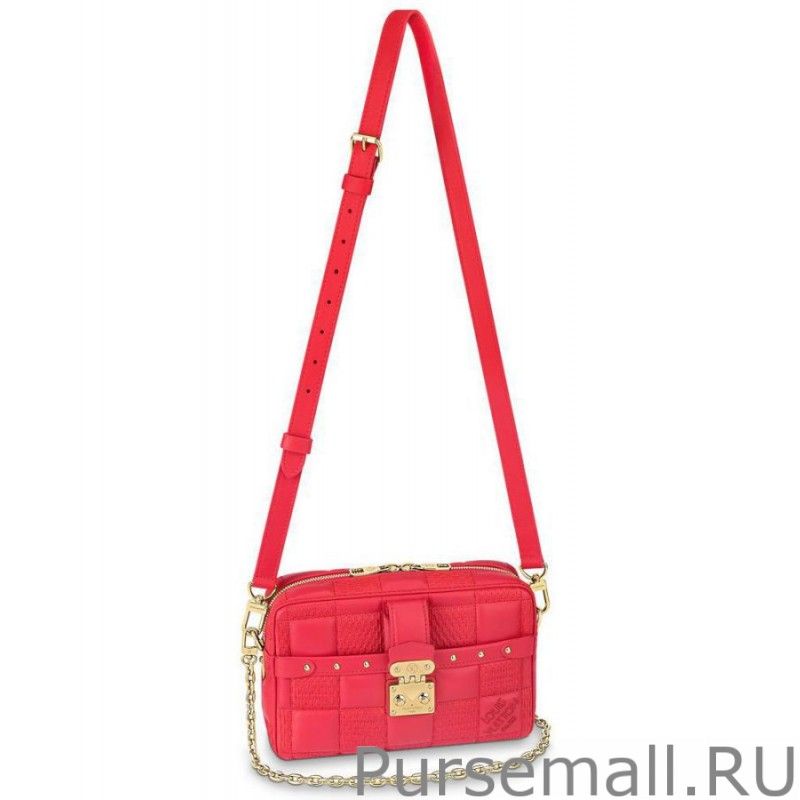 Designed for daytoevening use, the small Troca PM handbag is made from Damier Quilt, padded lambskin with a large checkerboard Damier pattern. Compact and supple, this bag is body friendly when worn crossbody and casually stylish when carried by hand. Its squarish shape is perfectly complemented by the goldcolor Slock.