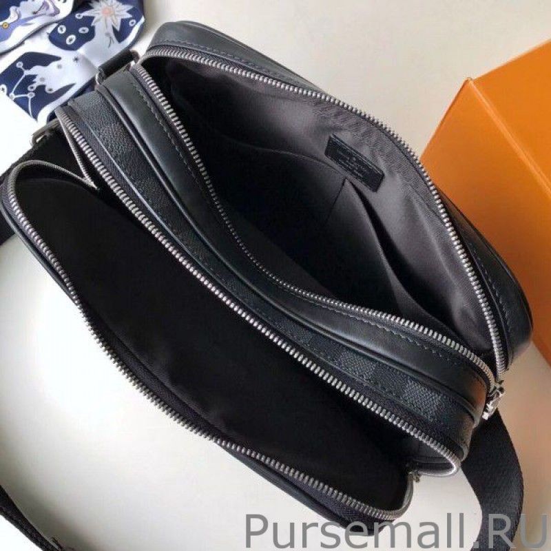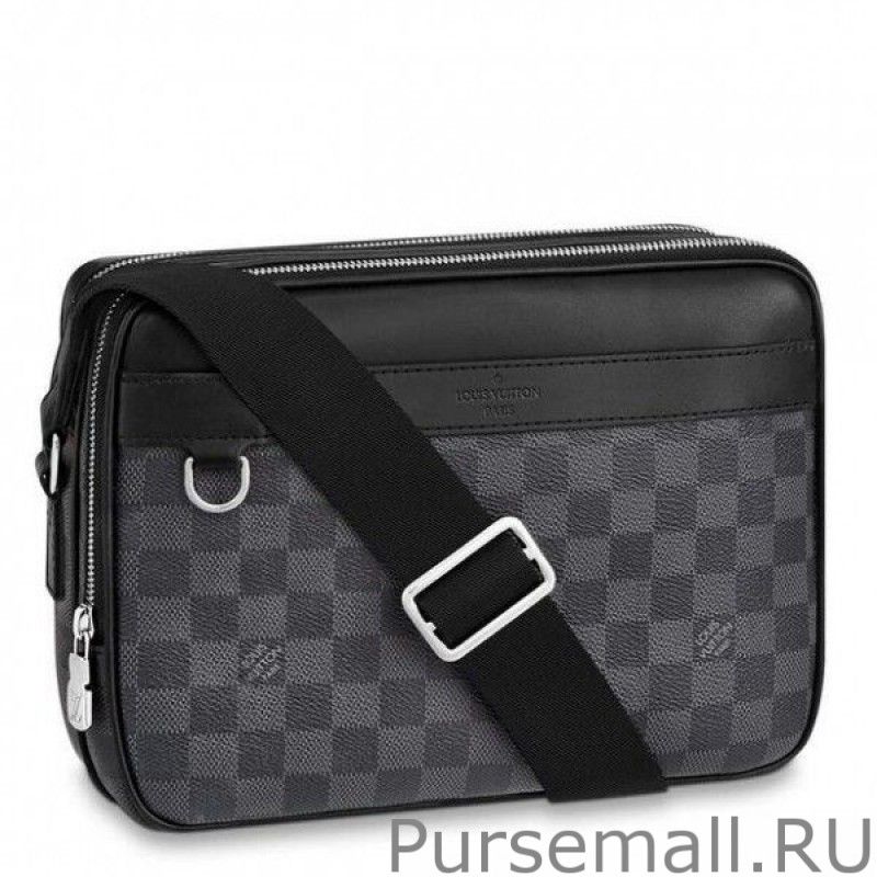 A design drawn from House archives inspired this Trocadero Messenger bag, crafted from Damier Graphite canvas. Rich leather details add refinement to its sleek, sporty lines. With two compartments as well as pockets inside and out, this PM model is ideally sized to carry a man day-to-day essentials in timeless style.