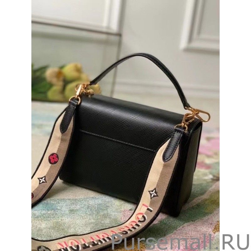 The iconic lines of the Twist MM handbag are revamped with a wide Jacquard strap. Embroidered with Louis Vuitton on one side and Monogram Blossoms on the other, the removable strap enables short crossbody carry. This Twist can also be carried by hand or worn on the elbow, thanks to a removable leather handle.