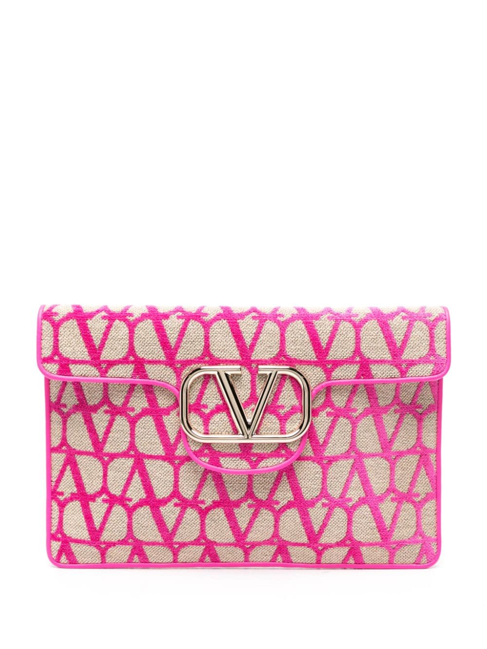 Valentino Garavani’s flocked-canvas Locò clutch is doused in house codes – from the velvety pink Toile Iconographe pattern to the gold-tone VLogo Signature hardware at the front flap. It’s crafted to a slender silhouette with leather trims and a coordinating lining.