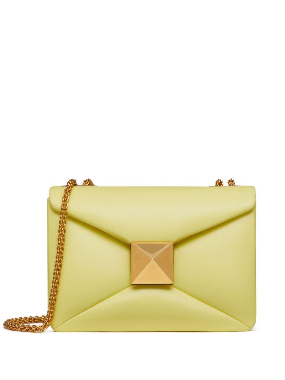 Introduced for SS22, Valentino Garavani’s One Stud bag is defined by its envelope silhouette and statement Rockstud embellishment at the front, an iconic house motif. Crafted from soft leather in Italy, this accessory can be worn across the body or at the shoulder thanks to its adjustable strap.