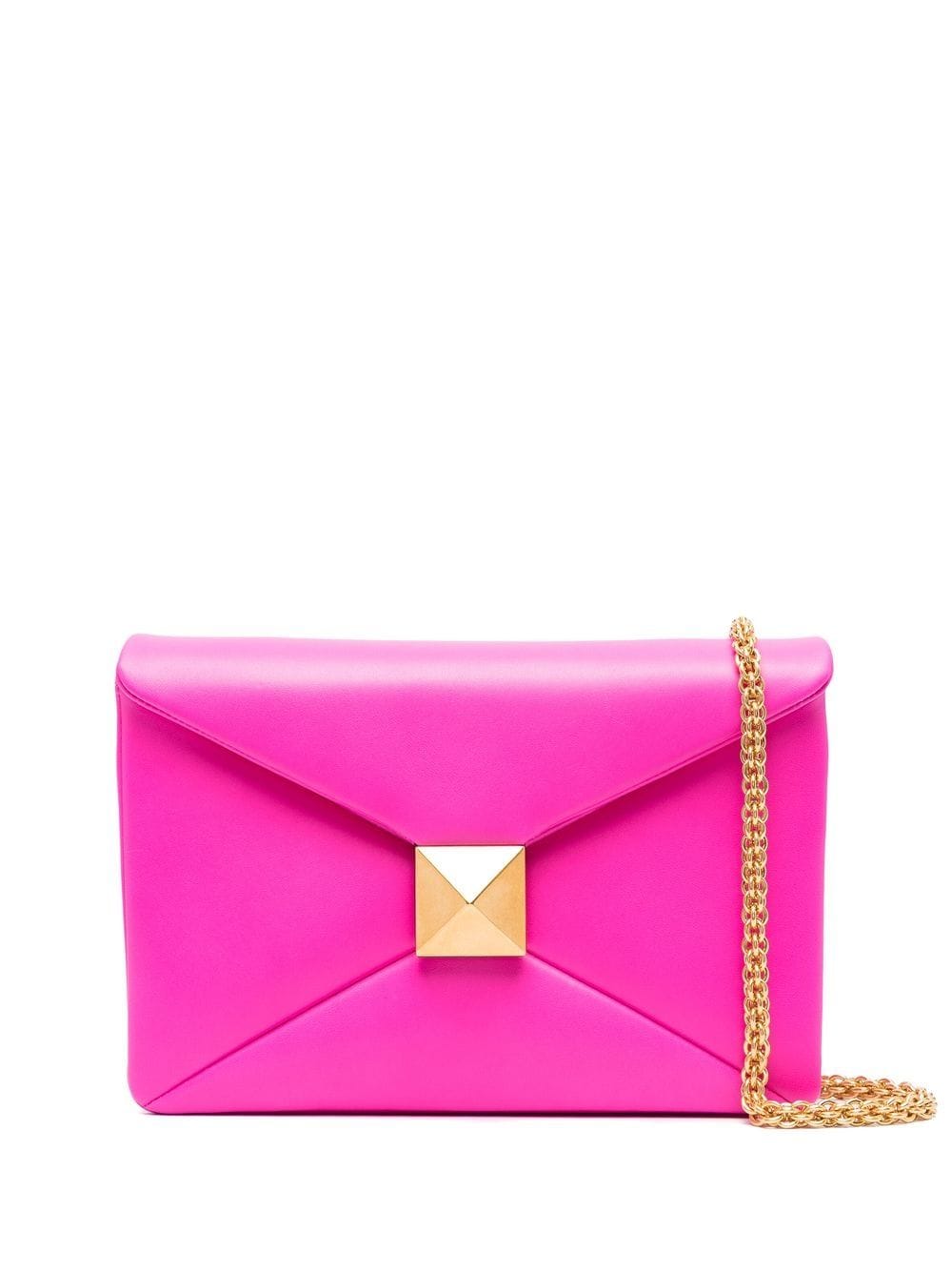 Developed for AW22, Valentino Garavani’s signature PP Pink shade was conceived by Pierpaolo Piccioli together with Pantone. The bright shade defines this iteration of the One Stud shoulder bag, which gets its name from the gold-tone Rockstud detail that accents the front.