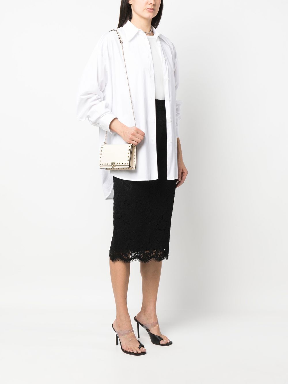 Crafted smooth calf leather, this ivory white from Valentino Garavani is punctuated with the house’s iconic Rockstud hardware throughout, whilst a detachable chain-link shoulder strap allows it to be worn in multiple ways.