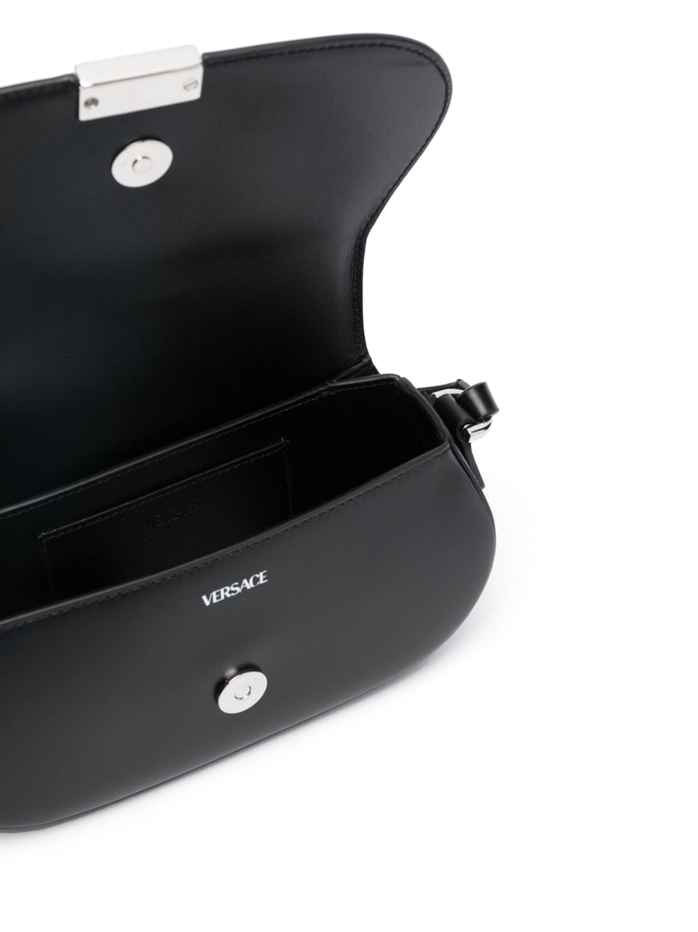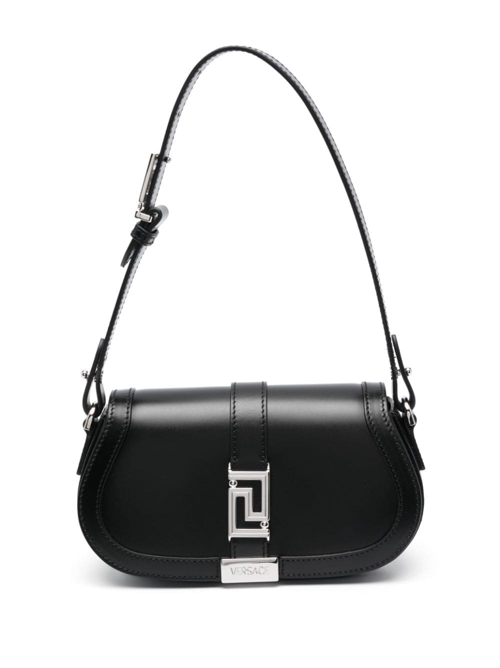 Signature branding underpins Versace’s designs, as evidenced by the Greca Goddess shoulder bag. Constructed in Italy from smooth leather, this accessory is punctuated with the iconic Greca chain hardware.
